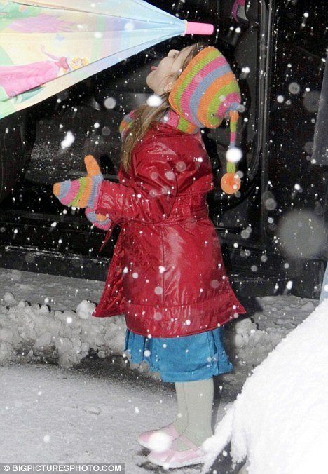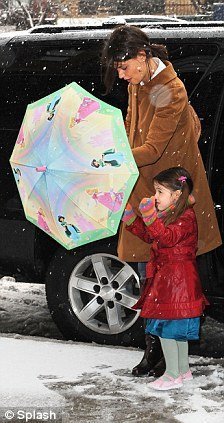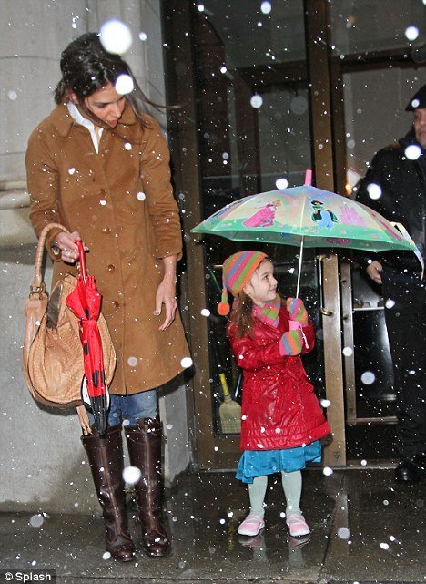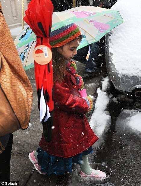 Чувствую, Кэти Холмс сейчас получит от вас, дорогие читатели, на орехи. И поделом! Вы только гляньте: миссис Том Круз в сапожищах по колено отправилась вместе с дочкой Сури поообедать. В Нью-Йорке дождь со снегом, слякоть и ветер, а на ногах у Сури что? Правильно: летние туфельки, которыми она смело ступает в лужу. Все разговоры Кэти о том, что девчушка все равно носит то, что хочет, и противостоять ей бессмысленно, кажутся нелепыми перед лицом более чем вероятной простуды. Спасибо, хоть колготки у ребенка на ногах есть.