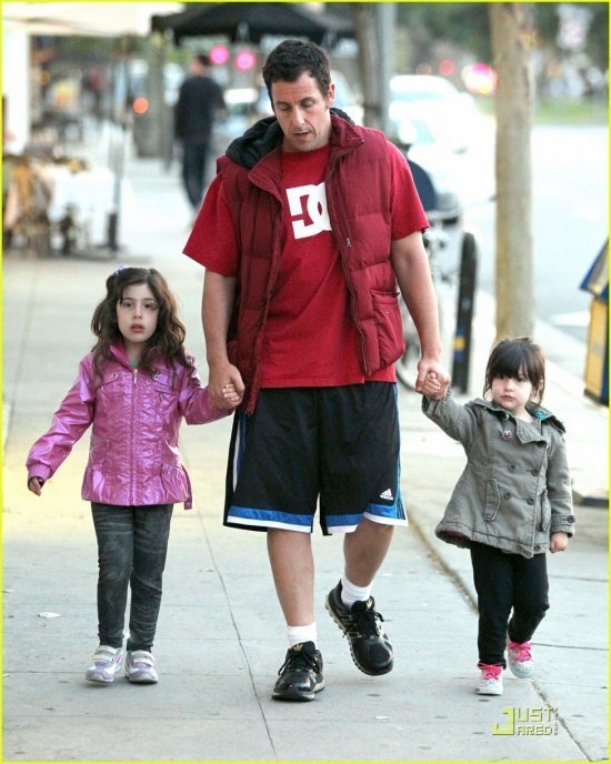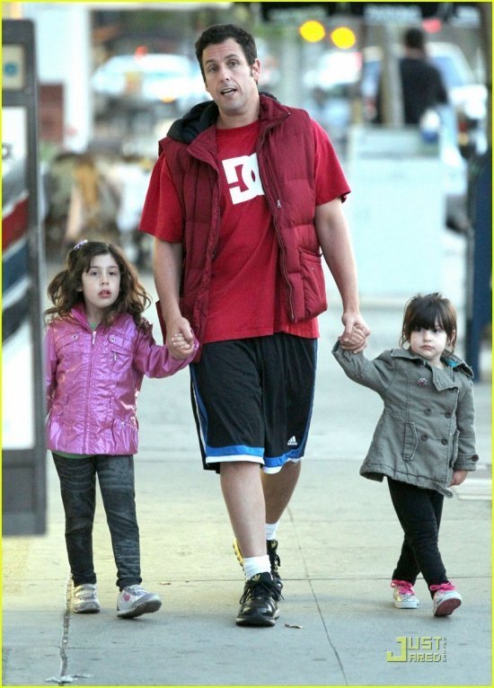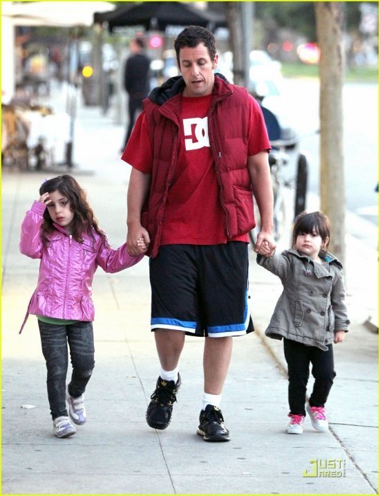 Адама Сэндлера папарацци подкарулили в Брентвуде, Калифорния. Комик прогуливался со своими девчонками Сэди и Санни. Ну-ка, заглянем под кат, и определим, кто чья дочка! Старшая, определенно, папина!
