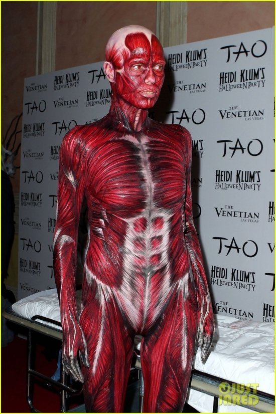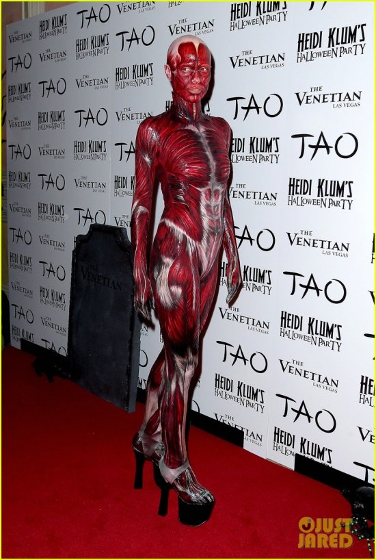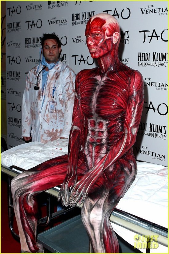 Сегодня канун Дня всех святых, или же Хэллоуин. В Голливуде уже начались разнообразные, но непременно костюмированные вечеринки в честь этого жутковатого праздника. Не знаем, есть ли там конкурсы на лучший наряд, но ежели таковые имеются, мы бы присудили первое место Хайди Клум, которая явилась на собственное хэллоуин-пати в ночном клубе Tao в Лас-Вегасе в образе анатомированного трупа.