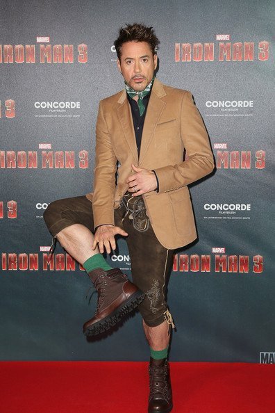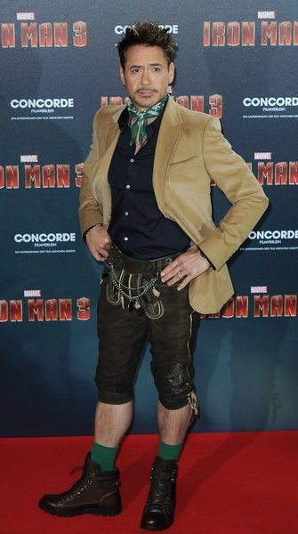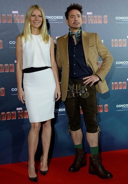 Роберт Дауни младший и Гвинет Пэлтроу встретились в Европе на премьерах «Железного человека 3». Причем Роберт устроил Гвини настоящий модный сюрприз. Первым пунктом после Москвы у Дауни был Мюнхен, где он вышел в якобы баварском костюме. Зеленые носочки, бриджи и пояс мастерового произвели неизгладимое впечатление на актрису, надевшую простое белое платье Kaufmanfranco на премьеру. В счастливом шоке были и журналисты — лауреат премии «Жорж 2013» порадовал всех!