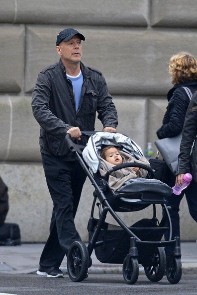 Образцовый родитель Брюс Уиллис вновь попался в в объективы нью-йоркским фотографам, будучи на променаде с годовалой дочкой Мэйбл Рэй. Чтобы у крохи был хороший обзор, Брюсси опустил верх коляски, благодаря чему отличный обзор появился и у нас с вами-) Можем теперь поразглядывать личико малышки Мэйбл и порешать, на кого она больше похожа-)