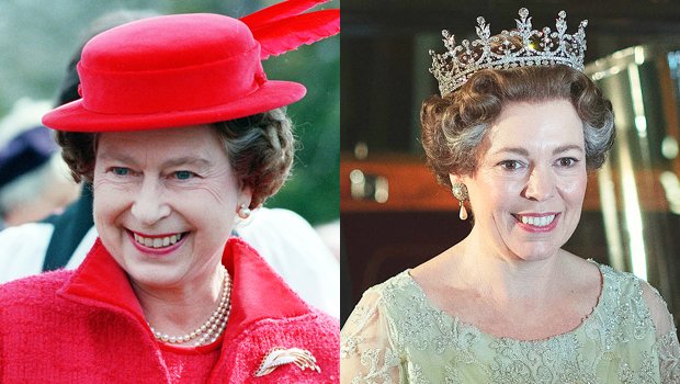 Оливия играет королеву Елизавету II, когда монарх достигает среднего возраста. Голос королевы Оливии понижается, и она превращается в королеву всякий раз, когда она носит эти фирменные красочные наряды, но между Оливией и королевой есть одно важное различие. У Оливии карие глаза, а у Королевы голубые. Синие контактны линзы рассматривались для Оливии, но в конечном итоге они были отклонены. У версии королевы Елизаветы II Оливии карие глаза.