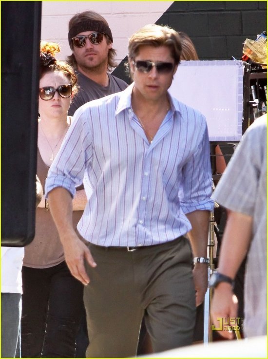 Брэд Питт продолжает создавать бейсбольную команду на съемочной площадке фильма «Деньгобол». Лента, как вы помните, повествует об «Oakland A«, а Брэду досталась роль их менеджера Билли Бина.