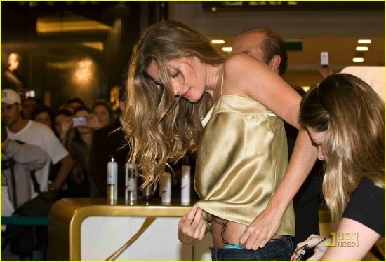 В процессе прикрепления микрофона Жизель даже оголила животик. Ну, как думаете, беременна?