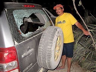 Фотограф демонстрирует ущерб, нанесенный его автомобилю