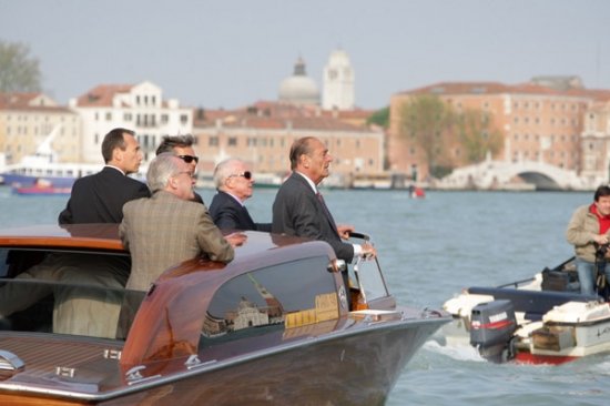 Пятница: гости едут на бал-маскарад в Punta della Dogana. К сожалению, в кадр попали не все.