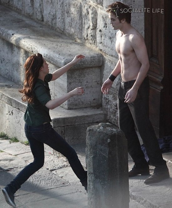 Итальянский городок Монтепульчиано стоит на ушах! Еще бы, ведь сюда со всем своим скарбом и аппаратурой прибыли киношники из съемочной группы «Новолуния«. В начале гости ходили осматривали достопримечательности и ужинали в местных ресторанчиках, а вчера, наконец, приступили к тому, зачем приехали — к съемкам. Ответственной, между прочим, сцены — поцелуя главных героев. Давайте-ка посмотрим, что они там наснимали да как!
