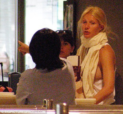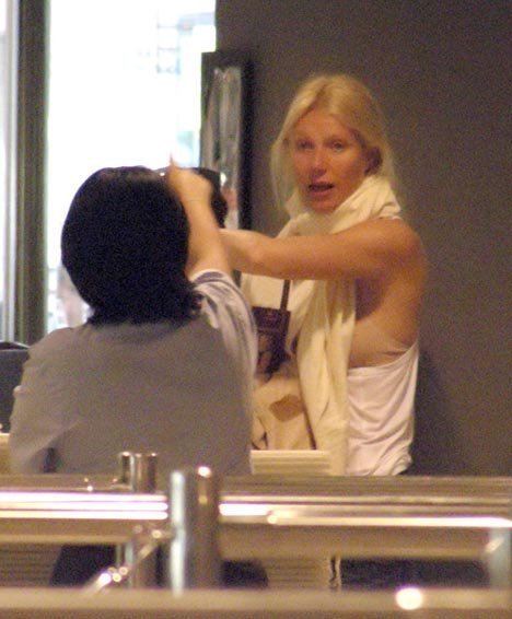 В эти выходные Гвинет Пэлтроу летела из Барселоны в Лондон. Для путешествия она выбрала следующий наряд: короткую серую юбку, просторнейшую белую майку и белый шарфик, который позволял скрывать то, что предательски новоровила открыть майка. Но когда Гвин шарфик сняла, окружающие ахнули: им показалось, что у актрисы обнажилась грудь. Но нет: предусмотрительная Гвинет не забыла надеть лифчик телесного цвета. А иначе снимки были бы пикантнее!