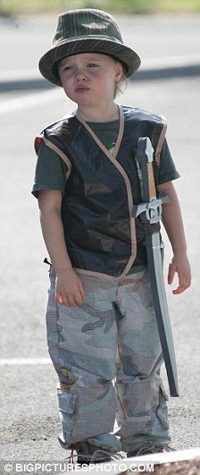 На днях папарацци повезло заснять Анжелину Джоли и троих ее ребятишек во французском Тулоне, когда вся компания направлялась в магазин игрушек. Заметим, Пакс и Захара — дети как дети, но Шайло! Шайло явно собралась на войну! Камуфляжные штаны, меч на поясе — воинственная девушка растет! Впрочем, это она явно в маму: та тоже, говорят, в детстве не в куклы любила играть. А в том, что касается моды, юная Шайло, вне всяких сомнений, следует за папой. Гляньте: шляпа у малышки такого же фасона, который полюбляет Брэд.