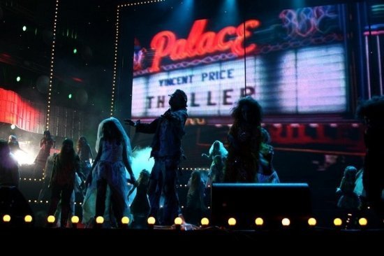 Специальный номер юбилейного шоу был посвящен памяти Майкла Джексона. Вслед за самыми яркими кадрами недавно вышедшего фильма о короле поп-музыки “This Is It” на экранах «Олимпийского» появился исторический клип “Thriller” а на сцене – его точное воплощение! Пятьдесят загримированных под зомби участников танцевального коллектива «Rock-On» в оригинальных костюмах в стиле «байки из склепа» в точности воспроизвели хореографию знаменитого видео. Экзотическое шоу сопровождалось теми самыми спецэффектами, которые Майкл Джексон использовал на своих концертах.