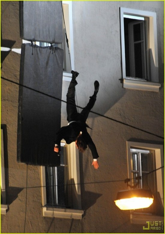 Том Круз всегда говорил, что трюки в своих фильмах предпочитает делать сам. Если кто ему вдруг не верит, срочно пожалуйте под кат, и убедитесь собственными глазами: Круззи сам метко палит из пистолета, виртуозно скачет по крышам и столь же виртуозно с них падает. Последнее, конечно, на веревочке, но все равно эффектно! Не говоря уже о панораме ночного Зальцбурга — это именно там Том сейчас снимается в картине Knight and Day, которая раньше называлась «Уичита».
