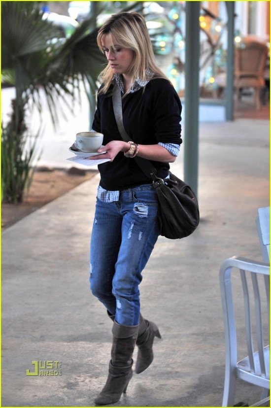 Папарацци подкараулили новоиспеченную холостячку Риз Уизерспун за чаепитием в Брентвуде, Калифорния. По снимкам видно, что тягостные мысли ее нет-нет, да и одолевают, но у Ризун хватает сил, чтобы посылать их куда подальше. Иль она не южанка?
