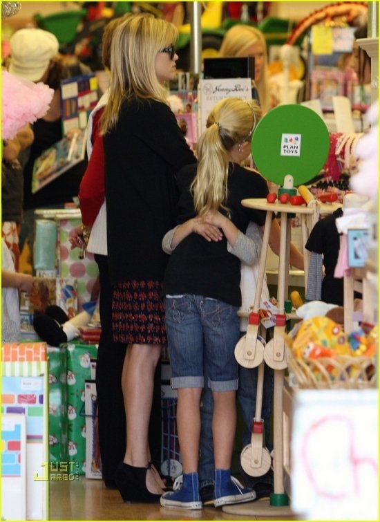 А накануне актриса ходила с детьми в магазин игрушек. До чего Ава уже большая — почти с маму ростом!
