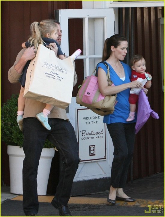 Кто-то из вас, дорогие читатели, недавно возмущался: что это, мол, Дженнифер Гарнер все время гуляет с дочками одна? Где гражданин Аффлек, который Бен, и который муж и папа? Куда подевался, подлец?:) Отвечаем! Судя по всему, был страшно занят делами, но теперь, когда у всех наступили праздничные каникулы, Беня нашел время на семью. Что и доказывают фотографии, сделанные папарацци вчера в Брентвуде, Калифорния. На них изображено все семейство, совершающее поход по магазинам. Зачем ходили, догадаться нетрудно: в среду младшенькой Серафине исполнится годик, так что, надо думать, подарки искали!