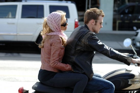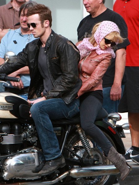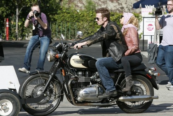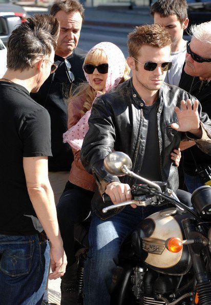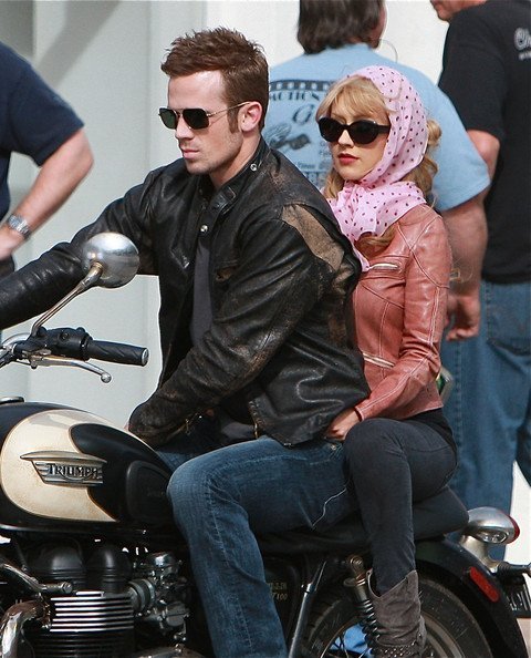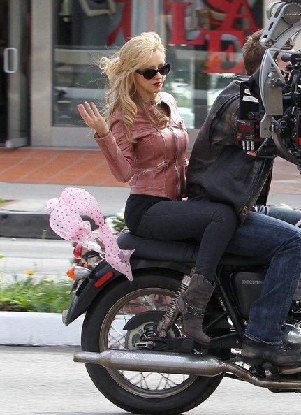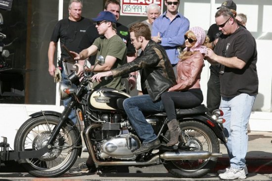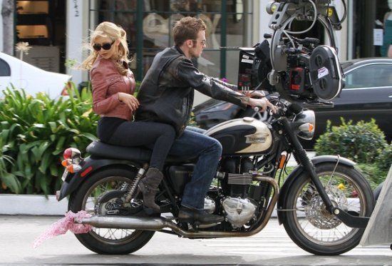 Кристина Агилера продолжает сниматься в музыкальной драме «Бурлеск». Мы уже видели, как Крис работала с Шер, а теперь девушка рассекает на мотоцикле с Кэмом Жиганде. Кэм тоже будет петь, интересно? ))