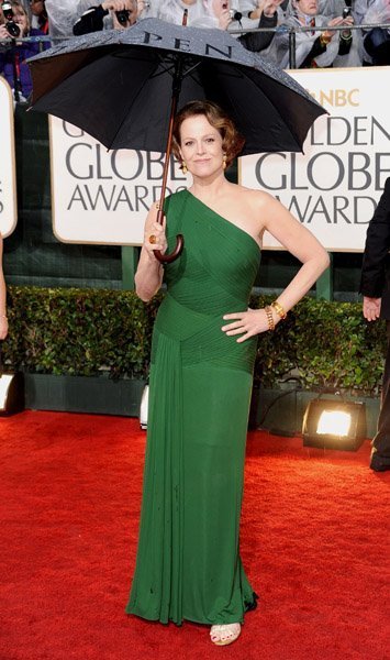 А у Сигурни Уивер платье жуткого зеленого цвета…