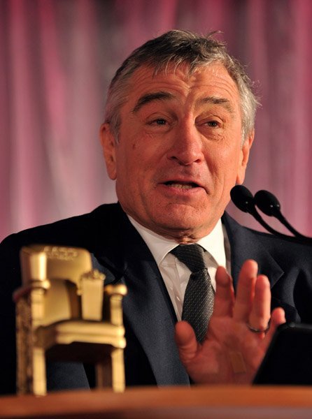 Каких только кинопремий не существует в мире! Вот, например, вы знали, что есть награды, учрежденные журналом AARP, которые называются Movies for Grownups Awards, то есть премии «Кино для взрослых«? Нет, не то взрослое кино, о котором вы подумали:)). Речь идет о фильмах, снятых людьми, которым несколько «за», и актерах, которые тоже разменяли шестой десяток. Например, здесь есть номинация «Лучший актер в возрасте 50 +» и «Лучшая актриса 50 +». Победили в них, кстати, Джефф Бриджес и Хелен Миррен. Последняя на церемонию не пришла: решила, видимо, что это некрасиво — напоминать даме о ее годах. А вот Джефф был, и очень радовался своему креслицу (ну или трону:-) — именно в такой форме отлит приз. Роберту Де Ниро вручили премию за вклад в киноискусство. Получая ее, 66-летняя легенда кино сказал: