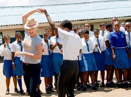 34-летняя актриса побывала в нескольких школах и приютах, и везде дарила ученикам электронные клавишные инструменты. Принимали ее как почетную гостью: спели хором, станцевали, причем в последнее мероприятие и саму звезду вовлекли.
