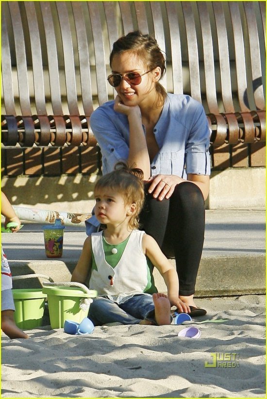 Что-то давно мы с вами не наблюдали папарацци-снимков Джессики Альбы, ее мужа Кэша Уоррена и их лапы-дочурки Онор. Но вот фотографы исправились, отловив все звездное семейство на прогулке в одном из парков Беверли Хиллз. Джесси повозилась с крохой в песочнице, покатала ее с горки и на качелях, а затем усадила в тележку и повезла по аллеям. Красота!