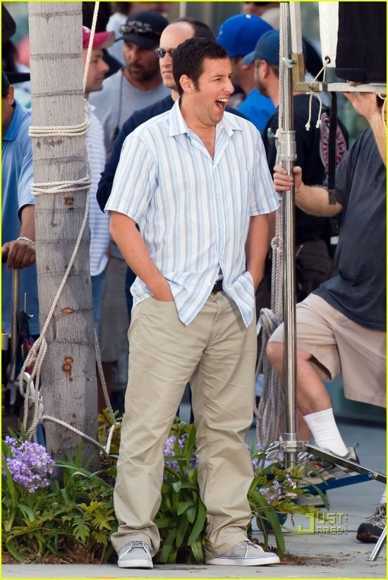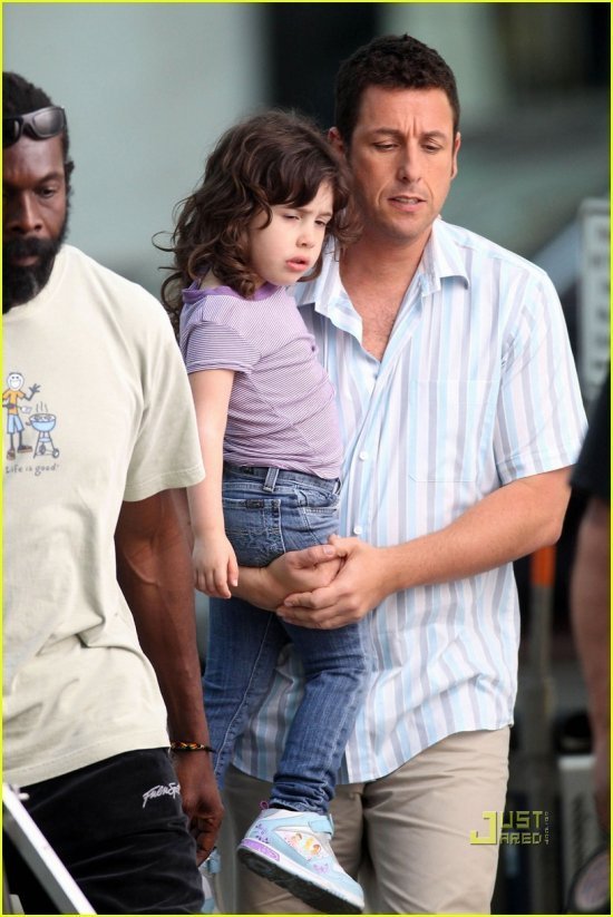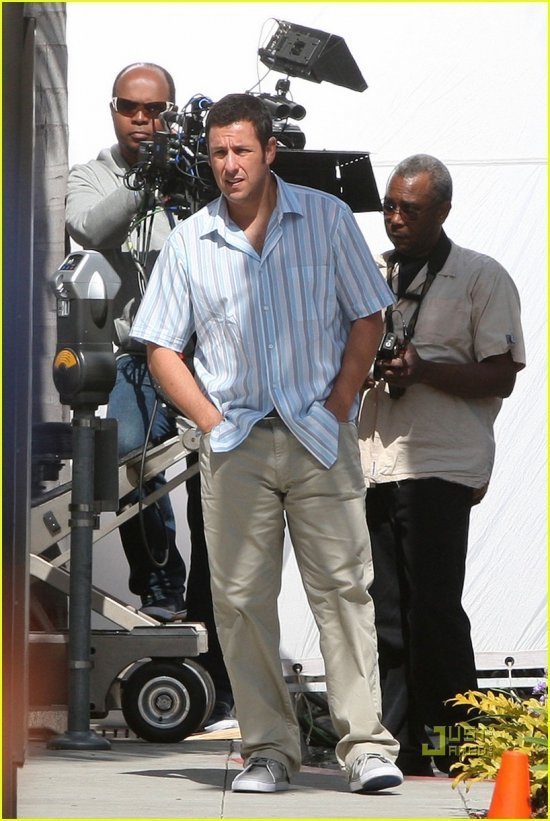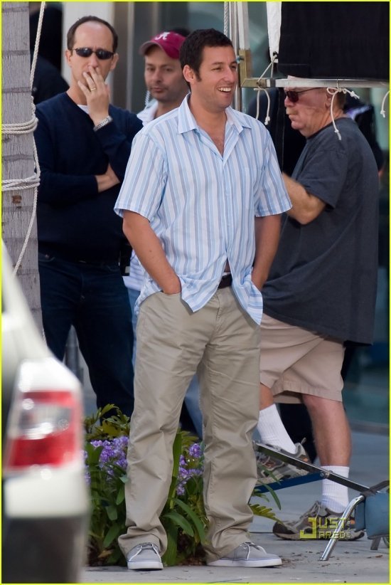 Адам Сэндлер и Дженнифер Энистон вовсю снимаются в комедии «Жена-притворщица«, о которой мы уже рассказывали. Съемки проходят на Родео Драйв в Беверли Хиллз. Заглянув под кат, вы сможете оценить, насколько хорошо Джен и Адам притворяются, а также посмотреть. что Адам поделывает в перерыве между сетами — гуляет с дочуркой Сэди Мэдисон. Девчушка у него — веселушка. Папарацци не смущается совершенно, глядит им прямо в глаза.
