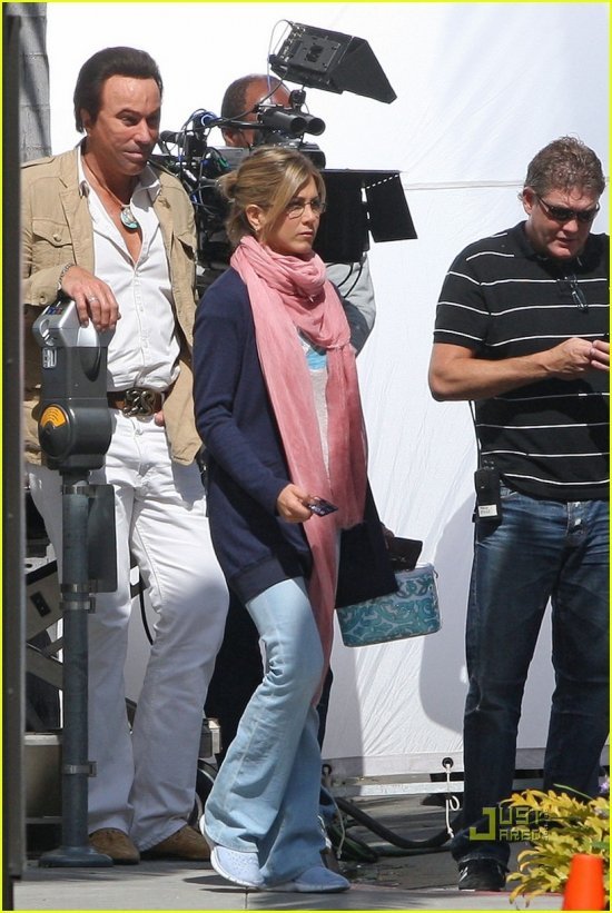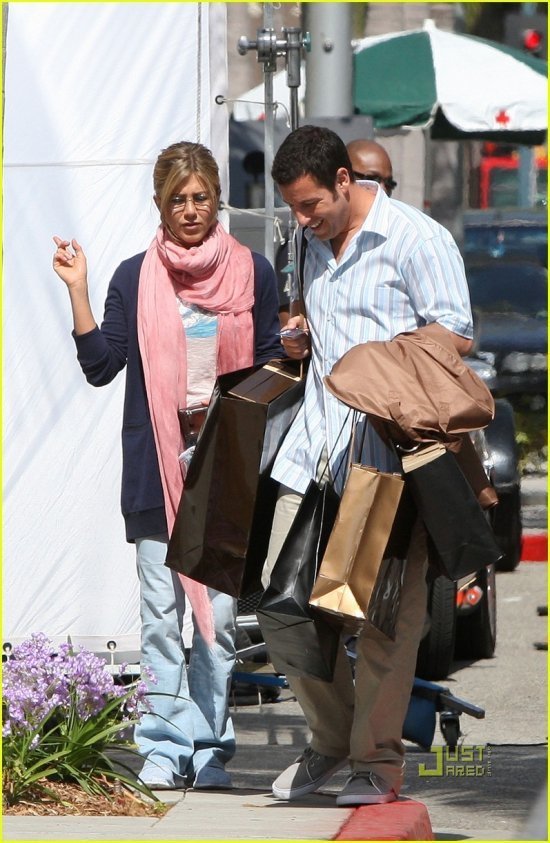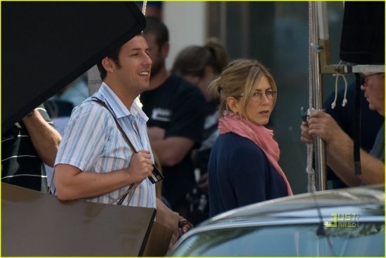 Адам Сэндлер и Джен Энистон на съемках