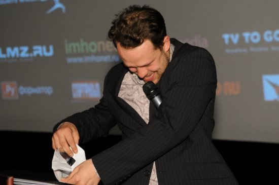 Лучшей российской комедией была названа картина «Каникулы строгого режима» — бесспорный лидер голосования. Вручать награду компании «20 век Фокс СНГ» должен был наш любимый Петя Федоров, и тут случился первый казус: Петя в этот момент сбежал в буфет )) Дозваться его не удалось, поэтому приз вручили без Пети. Пока зрителям показывали эксклюзивную нарезку из «Любовь-морковь 3», Федоров из буфета вернулся и смог подняться на сцену, чтобы получить еще один спецприз от организаторов — «Самый смелый фильм» за картину «Россия 88». Эту ленту Петр снял вместе с другом и режиссером Павлом Бардиным, ее успели назвать экстремистской, разрешить к прокату, осудить, запретить к прокату, оправдать и вновь разрешить показывать массам. За это время фильм фактически смотрели только в сети — поэтому логично, что интернет-премия ка-кто отметила «Россию…» Федоров благодарил «за респект» и сообщил, что их следующий с Бардиным фильм «Гоп-стоп» будет комедией, где можно «поржать и музыку послушать». напоминаю, что именно там Петя сыграет нам на балалайке — так что ждем.