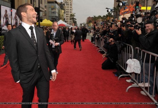 Команда Джерри Брукхаймера, побывав на красной дорожке фильма «Принц Персии: Пески времени» в Москве, а затем знатно оттянувшись в ночных клубах столицы, перебралась в Лос Анжелес на всеамериканскую премьеру картины. Джейк и Джемма снова изображали радость на красной дорожке — причем Джейк был практически в том же костюме от Тома Форда, разве что галстук украсил белым горошком )) Как всегда, жег перед камерами и рассказывал журналистам всякие байки — как на самой премьере, так и до нее. Все опасные трюки в картине он, разумеется, делал сам. Волосы, которые отрастил для роли Дастана, отрезал и хранит в коробчке на память. Хотя вообще-то, если будет сиквел, то он с легкостью может сыграть еще и Курта Кобейна, потому что прически похожи, и можно будет бегать с площадки на площадку. В общем, вы поняли, что доверять словам Джейка Джилленхола крайне не рекомендуется, да же? ))