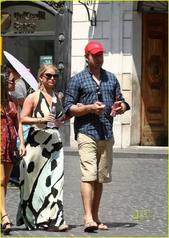 Джессика Симпсон и ее новый кавалер — бывший бейсболист Эрик Джонсон — отправились в романтические каникулы в Рим. Смотрим, как парочка осматривала достопримечательности Вечного города (Испанскую лестницу, в частности), как целовалась да обнималась на улице, как ужинала вечером в ресторане… Сразу видно, что Джессика влюблена по уши — так смотрит на парня, каждое слово ловит!