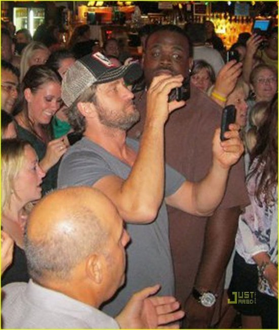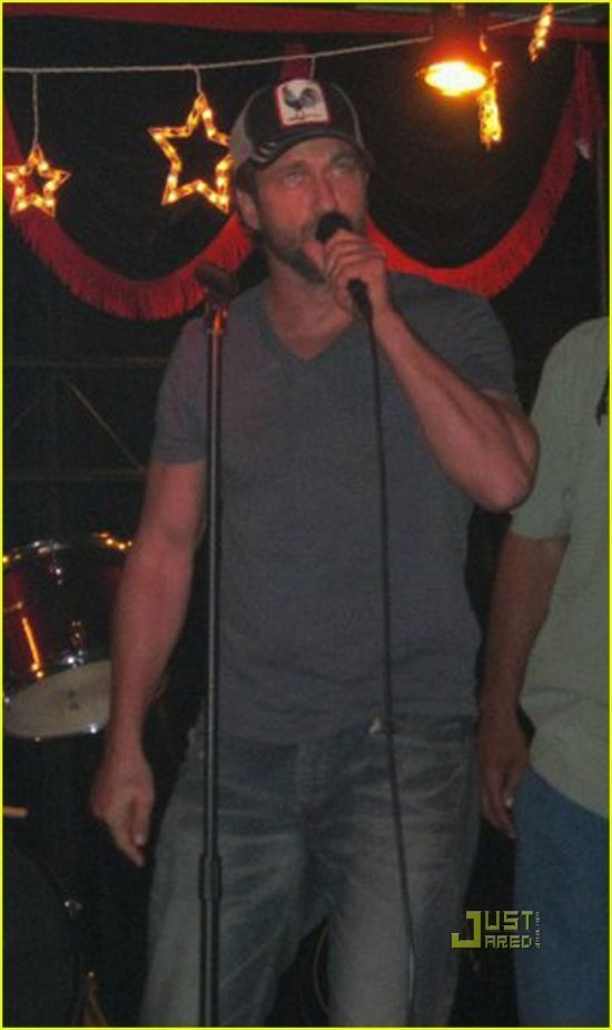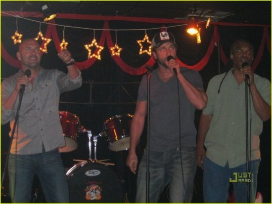Вчера в сети стали появляться фото недельной лежалости, но в данном случае продукт не стух и более чем годен к употреблению, потому что изображают картинки Джерарда Батлера, Деми Мур и Мишель Монаган, поющих караоке в Rockstarz Karaoke Bar в Детройте.