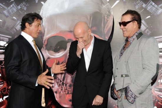 А старички еще ничего! Красавцы! На фотке, где Брюс с Микки Рурком, у последнего на заднем плане как будто бы уши! 😀