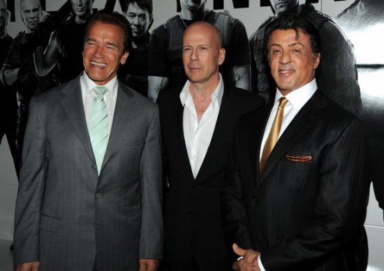 Сильвестр Сталлоне и его могучая команда пришли на красную дорожку фильма «Неудержимые» в Лос Анжелесе. Были все, кто мог быть — даже Арнольд Шварценеггер и Келлан Латс, аккуратно затесавшийся в могучие парни )) Микки Рурк пришел с подружкой Анастасией Макаренко, а Брюс Уиллис украсил себя женой Эммой Хемминг и дочкой Румер. Слай же привел на премьеру весь свой цветник: жену Дженнифер и трех дочек. Бежим под кат любоваться ими всеми!