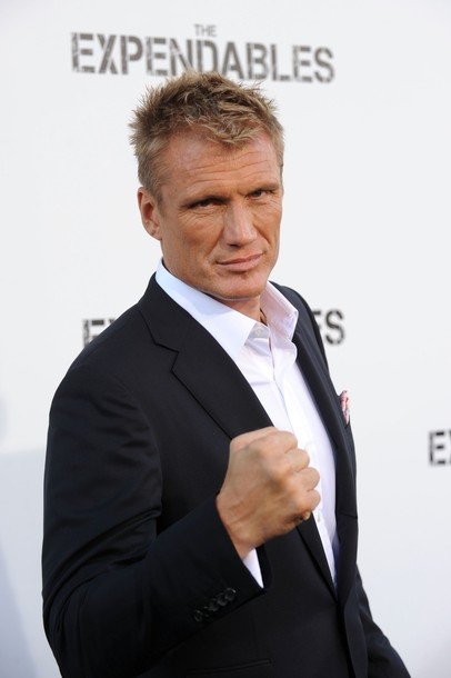 А вот Дольф Лундгрен пришел один и всем показывал кулак