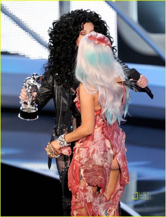 Во — вторых тут даже дело не в мясе, а том что я не переношу Гагу! Она что, никак больше не может выделиться из толпы поп певичек, кроме как нарядами?!
