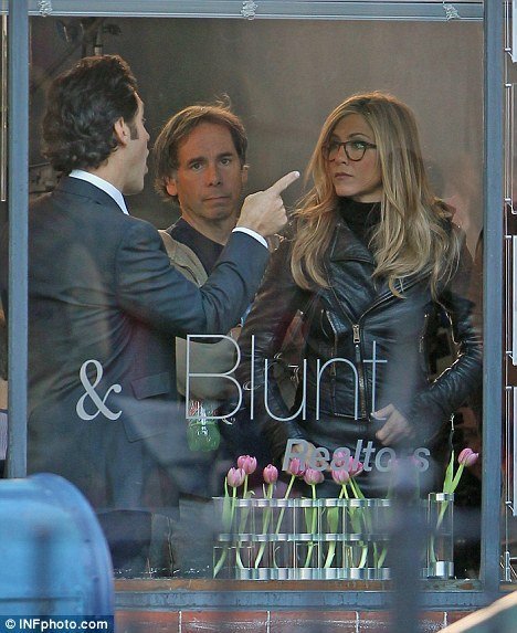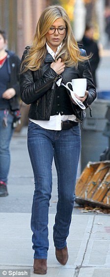 Заглядываем под кат и находим там изображения Джен в косухе и джинсах (а потом еще и в узкой юбчонке) на нью-йоркских съемках ее новой картины «Страсть к перемене мест«.