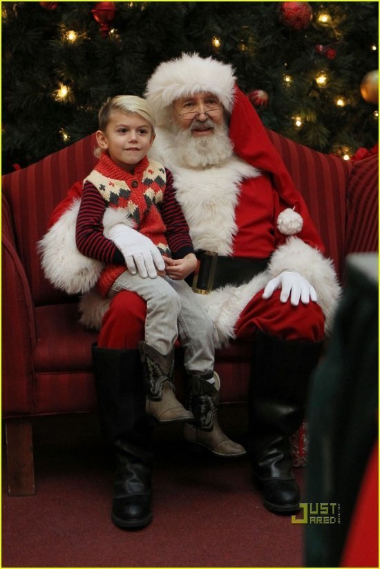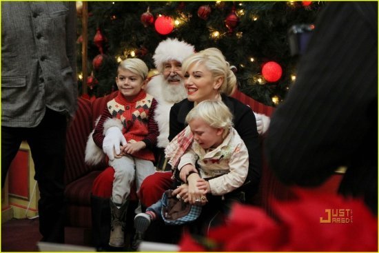Там певица не устояла перед возможностью запечатлеться на память с магазинным Санта Клаусом. 4-летнему Кингстону эта идея понравилась, а вот 2-летний Зума не испытал восторга от общения с большим дядькой в красном кафтане и с бородой и предпочел мамины коленки.