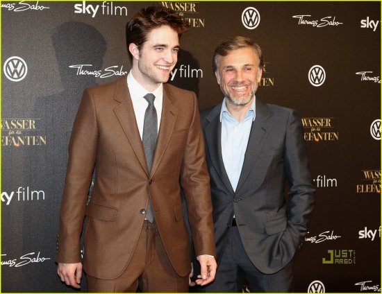 Вчера в берлинском CineStar состоялась немецкая премьера «Воды слонам!«. Представлять ленту приехали Кристоф Вальц и Роберт Паттинсон. Последний в коричневом костюме от Gucci усиленно жег лицом, традиционно искал что-то в шевелюре и с намеком почесывал нос.