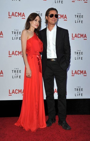 Джоли безусловно идет красный, но уж ооочень она худая, ну просто нездоровая худоба у нее и это уже некрасиво. Кости выпирают, надеюсь со здоровьем у нее все хорошо. Бредик поизносился конечно, морщины предательски выдают возраст, но по-прежнему чертовски привлекателен. 😉
