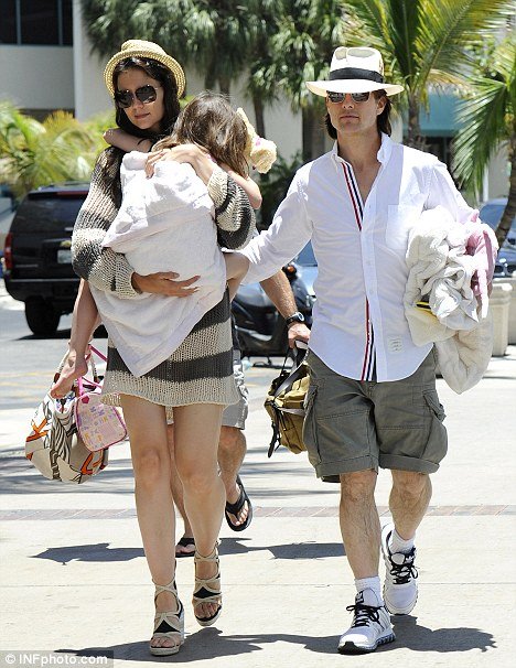 Я абсолютно согласна с Hanna,Сури уже большая девочка и ростом скоро с Кети будет!Пусть Том и таскает ее на руках,бедная Кэти,это такая нагрузка на спину!Видно по фото что у них там оч тепло,она босая,так еще и в одеяле!