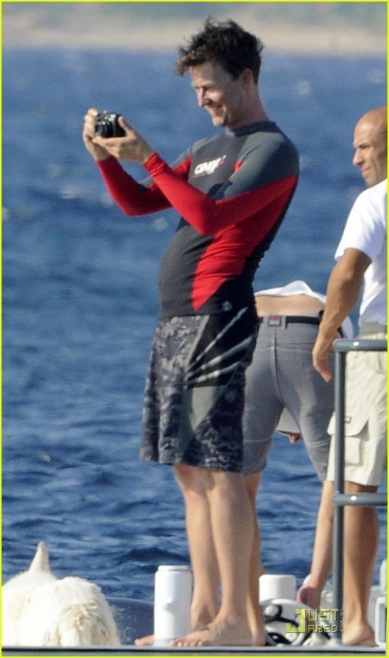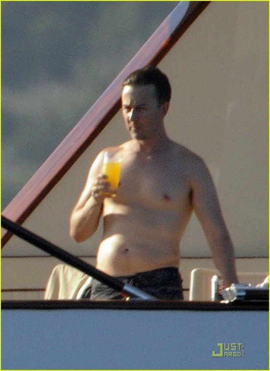 Други, случилось страшное: Эдвард Нортон наел пузико! Сие стало очевидно, когда актер отправился вместе со своей не просто подругой, а, как говорят, уже и невестой Шоной Робертсон отдохнуть на Costa Smeralda в Италии.