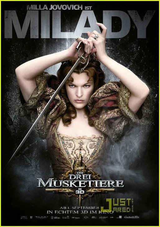До премьеры «Трех мушкетеров» — нового совместного детища Пола Андерсена и его супруги Миллы Йовович — осталась всего пара месяцев, и рекламная кампания ленты набирает обороты. После постера, запечатлевшего всех главных героев в одном коллажном флаконе, в ход пошла тяжелая артиллерия: каждому персонажу по два плакатика — на немецком и на английском языках.