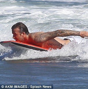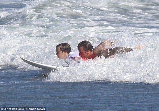 В последнюю неделю Дэвид Бекхем не только «шпионил» за спящими женой и дочерью🙂 Он успел еще сыграть a футбол с именами всех его теперь уже четырех отпрысков на бутсах, но и заняться ликбезом со старшим сыном Бруклином: папа обучал пацана кататься на доске в Малибу и протоколировал на камеру его успехи.