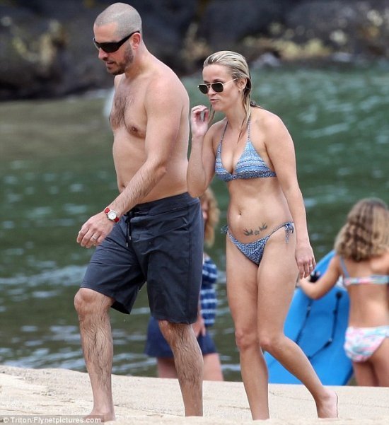 Риз Уизерспун с детьми и мужем Джимом Тотом приехала отдыхать на Гавайи. Папарацци, естественно, последовали за актрисой и ее семьей на пляж, и понаделали кучу снимков звезды в купальнике.