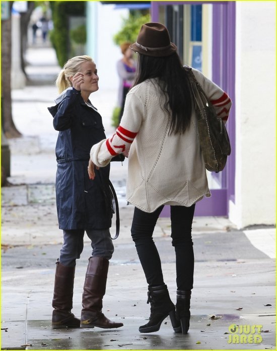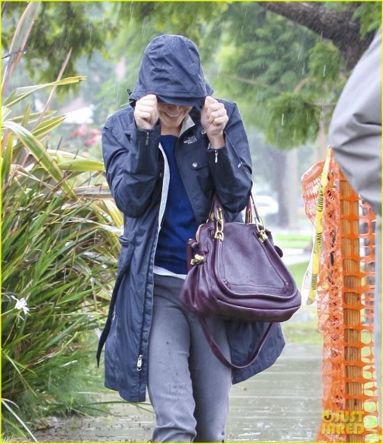 Риз Уизерспун на днях вышла из дома вместе с мужем Джимом Тотом, не озаботившись таким важным предметом, как зонт. В результате обоим пришлось изрядно помокнуть под дождем. Риз повезло больше: у нее хотя бы был капюшон:)