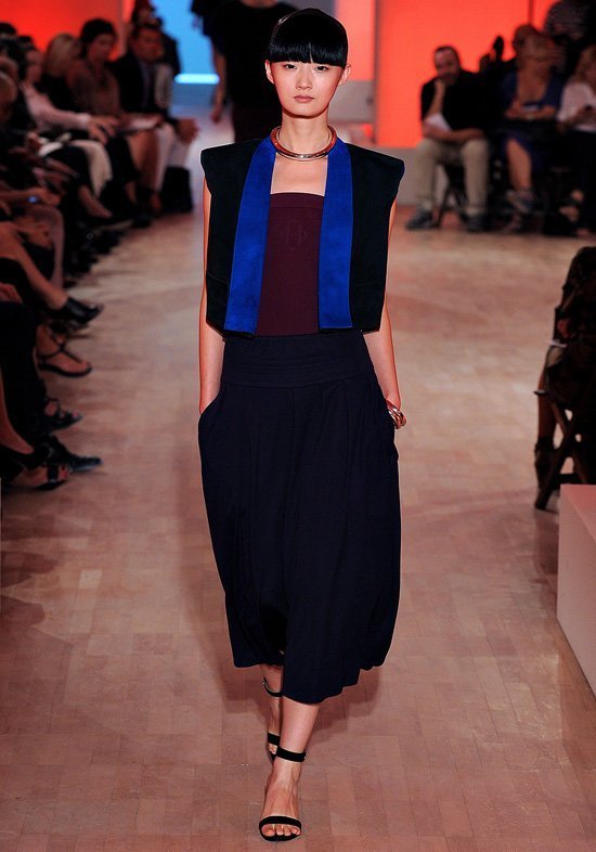 Неодназначное отношение к колекции Hermes. Больше всего понравились сумки) понравилось сочетание фактур тканей, сочетания цветов… оранжевый, терракотовый… понравилось асимметричное синее платье, фиолетовое с синим в пол… но общие силуэты — не моё… и обувь некрасивая, каблук либо должен быть высокий, либо его вообще не должно быть.. хотя на вкус и цвет.. Но стоит заметить, что эта коллекция выделяется на фоне представленных… А Валентино — красота, то что надо девочкам)