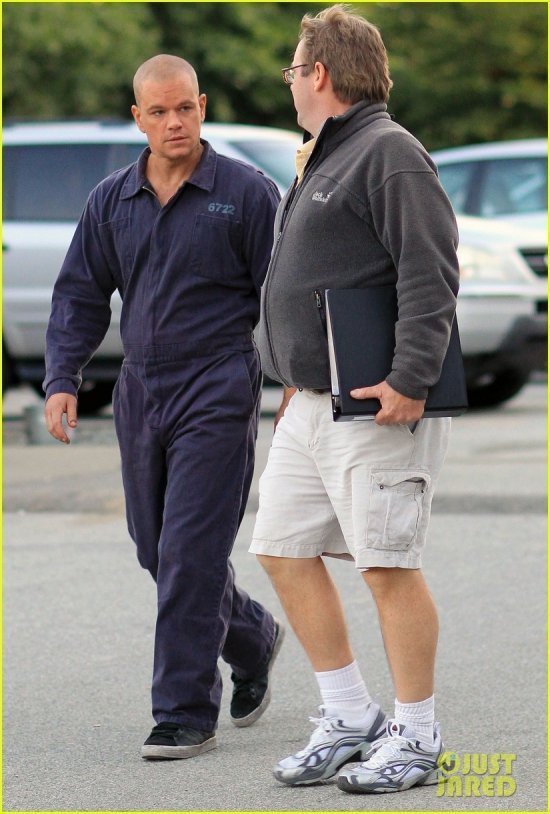 Стало понятно, почему Мэтту Дэймону понадобилось обривать голову — ради проекта «Элизиум«, где его герою предстоит побывать в заключении. Заглядываем под кат и находим фото звезды в перерыве между сетами при новой «прическе» и тюремной робе: ему, имхо, не идет ни то, ни другое. Но если роба вообще никому не идет, то о голых черепах такого не скажешь:)