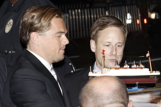 На красной дорожке произошло трогательное событие: один из поклонников подарил Лео модель «Титаника». Актер что-то не воодушевился и не залился слезами ностальгии -а зря, ведь фильм снова выходит в прокат 5 апреля 2012 года в 3D. Небось, и красная дорожка будет. Готовься, Леонардо!