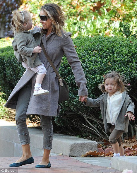 Сару Джессику Паркер папарацци застигли в Нью-Йорке на прогулке с дочками Марион и Табитой. Вся троица была одета в пальтишки серого цвета. Можно было бы помянуть троих из ларца- одинаковых с лица», да вот незадача: как раз личиками девчушки больше пошли в папу — Мэттью Бродерика🙂 А в маму пусть будут модницами:)