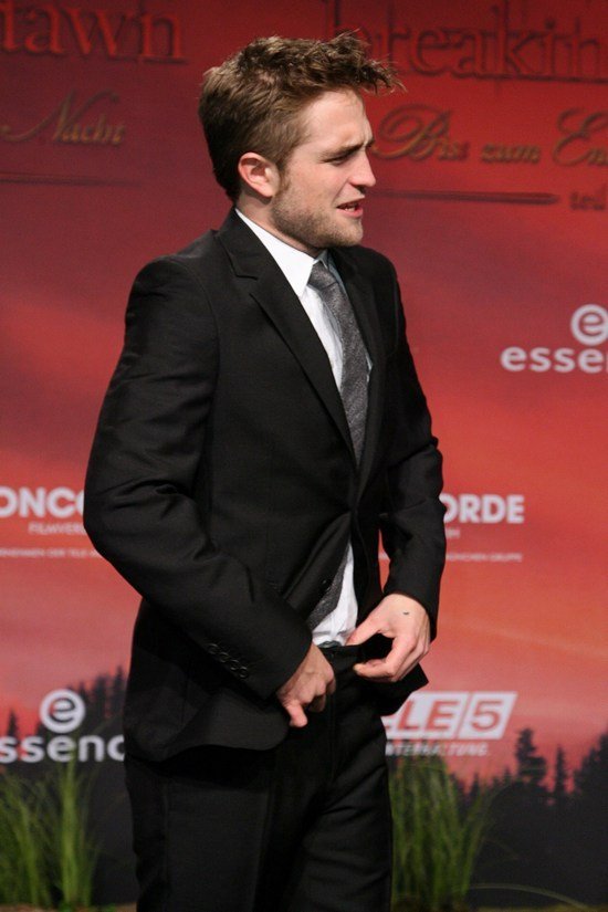 На красной дорожке Робушка порадовал нас, как мог. Хватался за волосы, делал утиные губки и, главное, не отрывался от своих брюк. Как-то он все время переживает, что они спадут или еще что приключится: на каждой премьере все время оправляется, приглаживается и прочее-прочее. Вживую это, конечно, дело нескольких секунд, но на фото смотрится ужасно забавно:)