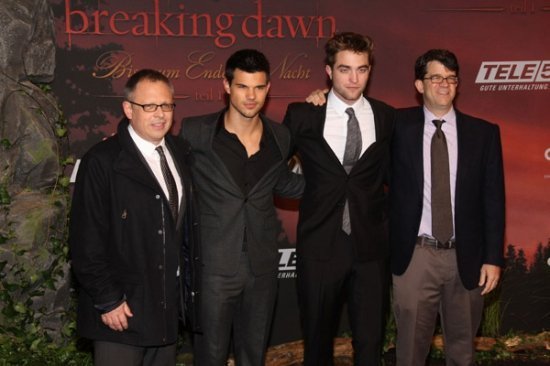 Роберт Паттинсон и Тейлор Лаутнер переехали с «Рассветом» из Барселоны в Берлин, где представили фильм немецким поклонникам. Помогали им в этом режиссер Билл Кондон и продюсер Вик Годфри. На пресс-конференции довольно много вопросов было к Биллу — как он придумал сцену запечатления, сама ли похудела Кристен Стюарт для образа страдающей Беллы, планировался ли фильм в 3D и все такое прочее. Насчет последнего и Билл, и продюсер были категоричны: никакого тридэ, они сразу хотели отличаться от массы трехмерного кино и подчеркнуть, что все события происходят в реальном мире, а не суперобъемном.