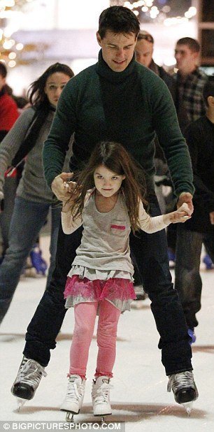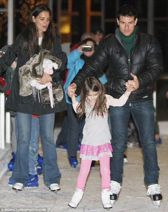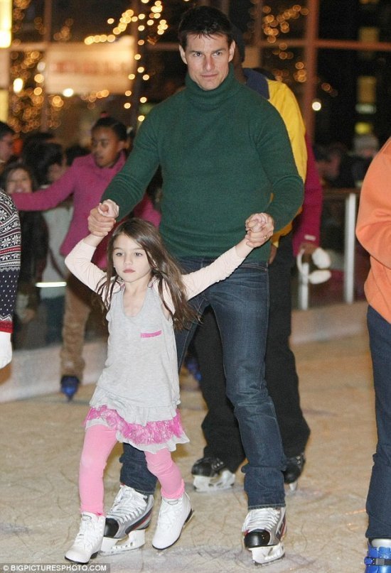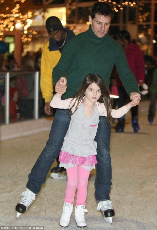 Впрочем, сейчас мы поведем речь не о съемках фильма «Выстрел», а а том, как Том проводит свободное время — естественно, с семьей. На днях папарацци застали звезду на катке в компании супруги Кэти Холмс и дочери Сури. Давайте-ка заглянем под кат, и понаблюдаем, как все трое стоят на коньках!